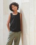 Self fabric binding around neck and armholes, Enzyme wash for unique soft hand feel, Longline slim fit, Twin needle stitching at sleeves and hem, Tear out label